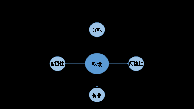 我們以飯館為例,吃飯是人的剛需,以這個剛需為基礎,通過分解它的特點,還可以組合出更多的細分需求。