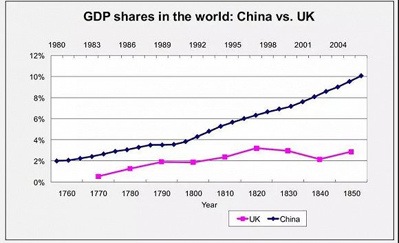 GDP占世界比重:中國VS英國